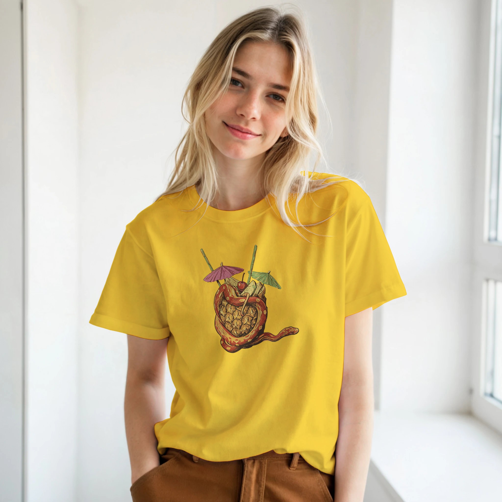 Get ready to turn heads and express your fandom! Order your Iconic Snake and Pineapple T-Shirt today and enjoy comfort while showcasing your unique style.